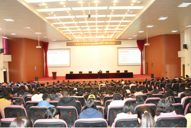 12月4日是我国的第六个国家宪法日。为进一步提高学生法治素养,结合《思想道德修养与法律基础》课程实践教学,上午10点,马克思主义学院邀请邀请丽江市古城区人民检察院第二检察部主任沈瑞萍做了题为“法治与生活”的讲座,2019级450余名师生在图书馆报告厅聆听讲座。