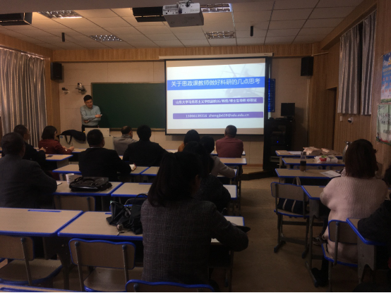 2019年11月14日下午,郑敬斌教授在教学楼308做了一场为题《关于思想政治理论课教师做好科研的几点思考》的精彩讲座,校党委书记张祖武、马克思主义学院全体专兼职教师参加。郑教授围绕“何为科研、为何科研、科研何为”三大部分的内容进行了详细的阐述和交流,对我校思想政治理论课教师的科研具有很强的现实指导意义。聆听此次讲座的教师表示此次讲座的针对性很强,收获非常大,对自己的科研发展有很大的帮助!