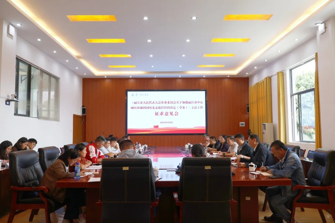 为贯彻立法原则,增强立法的针对性、及时性、系统性、可操作性,进一步提升立法质量,广泛汇聚各方智慧,9月9日下午,《丽江市人民代表大会常务委员会关于加强丽江市中心城区环城田园风光走廊管控的决定(草案)》(简称“决定草案”)征求意见座谈会在我校市人大常委会基层立法联系点(马克思主义学院)召开。本次座谈会邀请了古城区束河街道、祥和街道、大研街道、金山街道、开南街道,玉龙县黄山街道村(社区)干部、居民等基层群众代表以及我校相关立法专家参与。大家齐聚一堂,围绕加强丽江市中心城区环城田园风光走廊管控工作的立法必要性、可行性及具体条款等展开热烈讨论,为完善相关内容积极建言献策。