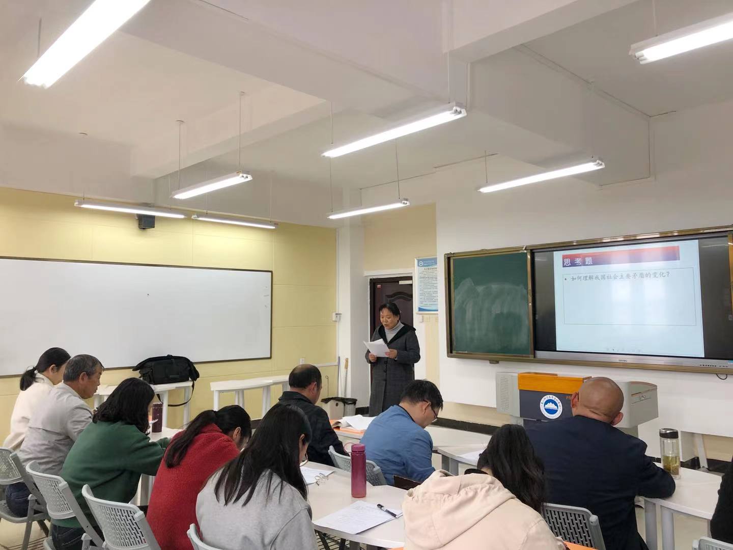 为加强和改进《毛泽东思想和中国特色社会主义理论体系》教育教学活动,全面提升课程“金课”建设水平,落实好思政课立德树人根本任务,贯彻政治性和学理性、价值性和知识性、建设性和批判性、理论性和实践性、统一性和多样性、主导性和主体性、灌输性和启发性、显性教育和隐性教育等相统一建设要求,4月2、9日,我院《毛泽东思想和中国特色社会主义理论体系概论》教研室组织开展本学期同课异构集体备课活动,共有6位教师分别围绕“社会主要矛盾的变化”“中华民族近代以来最伟大的梦想”同一教学内容开展同课异构课堂教学展示,深受教师们一致欢迎和认可,纷纷表示:通过同课异构集体备课教研活动,科学合理教学设计,清晰了教学思路,明确了教学重难点,丰富了教学手段,有助于提高思政课课堂教学的时代性、创新性和理论性。