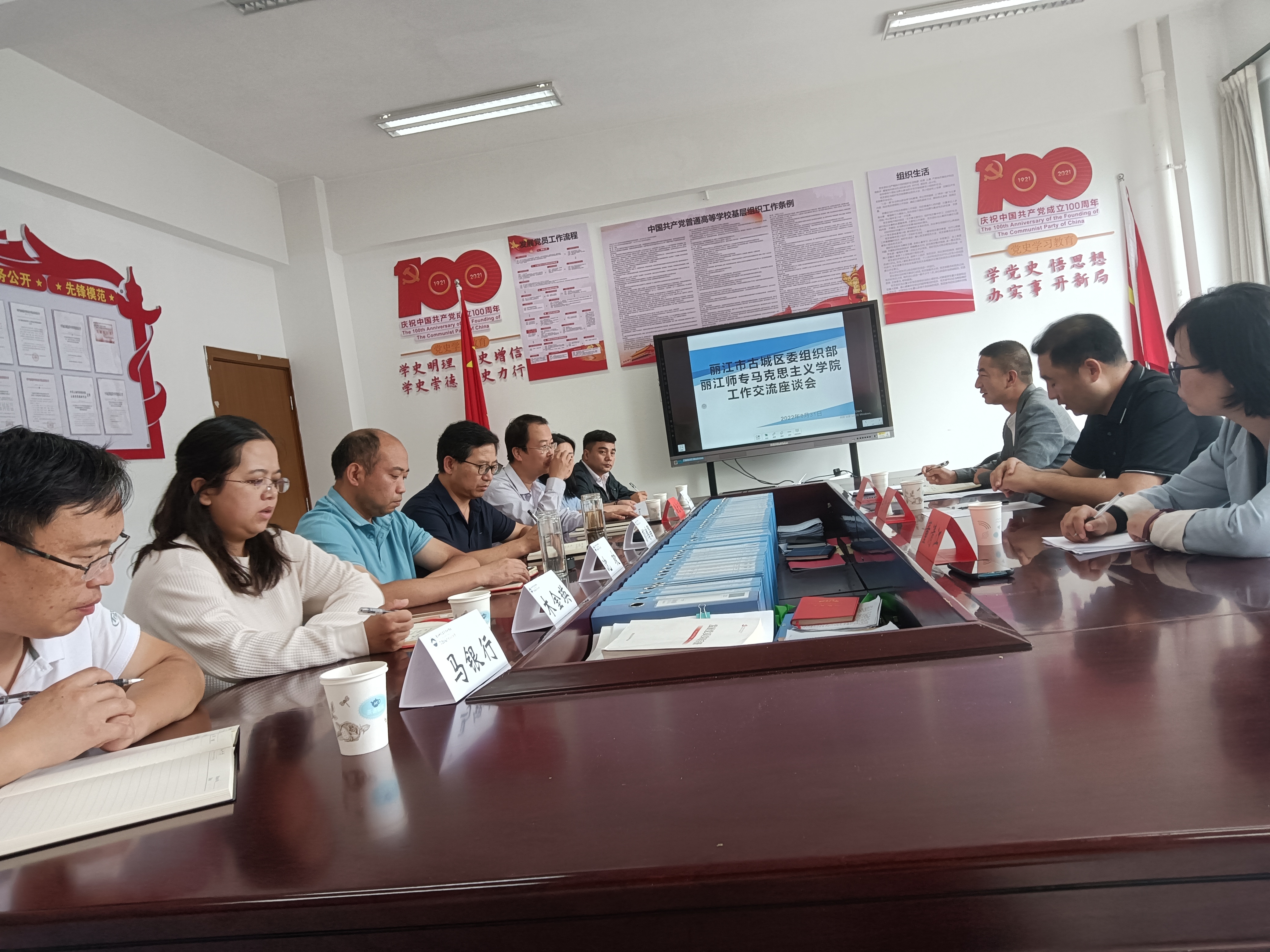 双方就丽江市古城区“八大教室”建设项目的合作、马克思主义学院的特色和亮点、进一步合作的内容等进行了深入交流。彭鸿昌副书记对学校的现状、发展规划和思政课的建设、丽江市大中小学思政课一体化建设、重走长征路实践研修、马院理论宣讲团等方面的情况进行了充分介绍。吴少翔部长首先对学校以及马克思主义学院老师们在古城区委党员教育等方面作出的成果表示了感谢,希望以后在“八大教室”的品牌提升、党员的教育培训以及党建课题研究方面等加强合作。