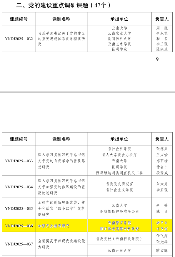 近日,中共云南省委组织部、云南省党建研究会下发了《关于印发云南省党建研究会2025年工作要点和课题选题的通知》,我院寸玉海同志申报的课题《加强党性教育研究》(课题编号:YNDJ2025-036)喜获党的建设重点调研课题立项。