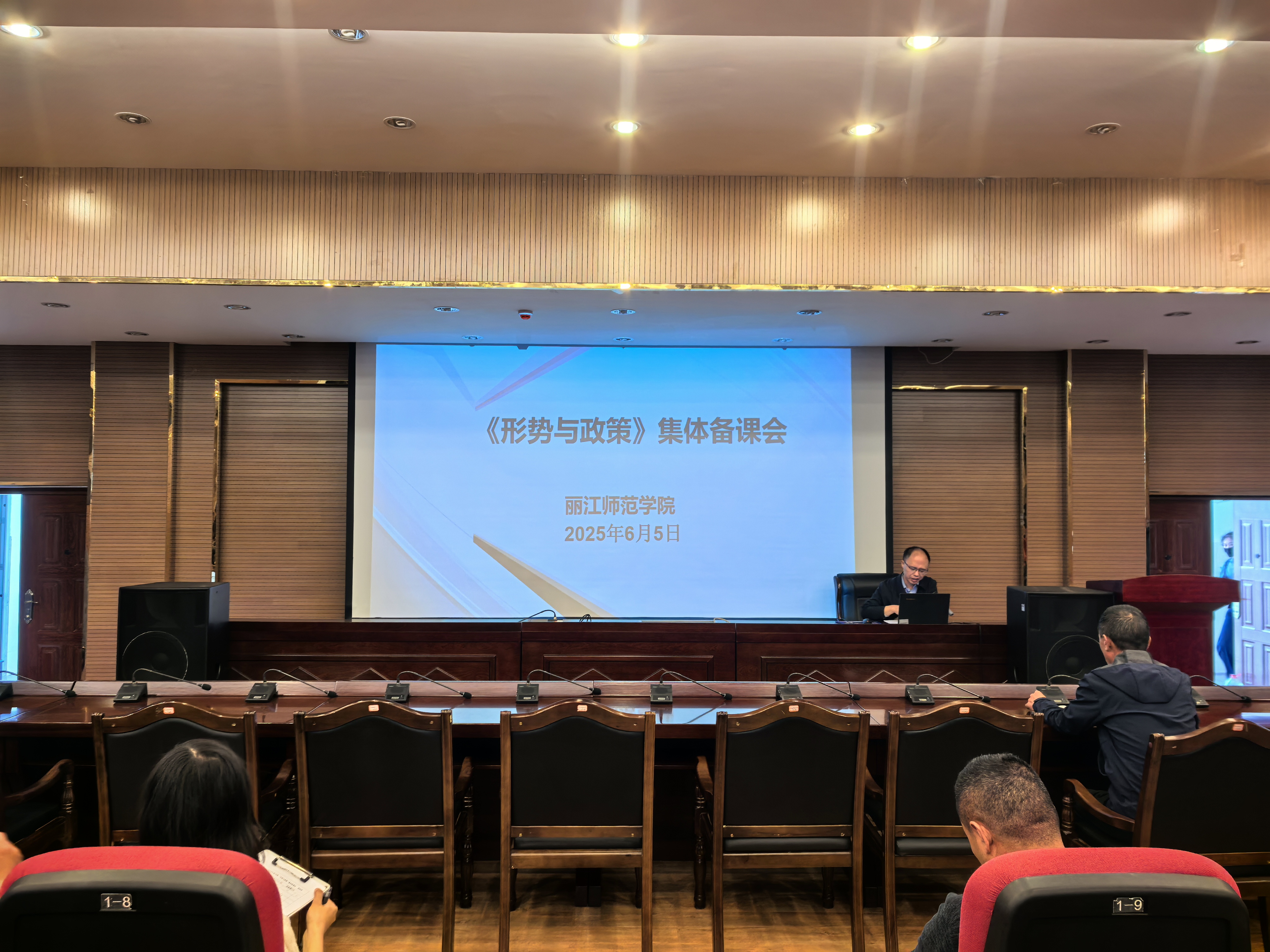 6月5日下午,2025年春季学期《形势与政策》课程集体备课会在求是楼318教室召开,承担本学期《形势与政策》课教学任务的专兼职任课教师20余人参加集体备课会,会议由马克思主义学院分管教学副院长木金瑛主持。
