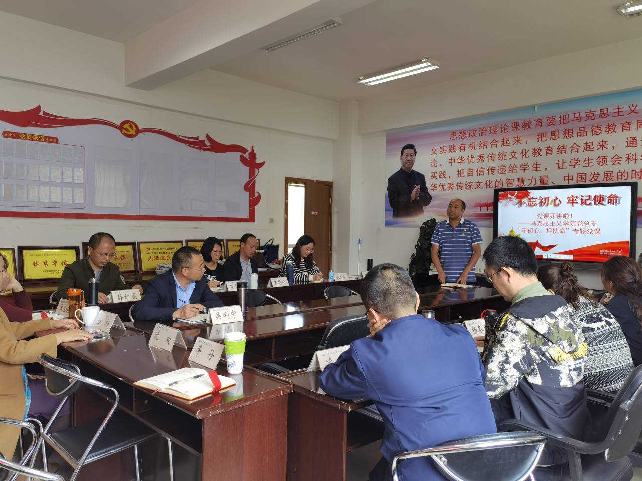 根据校党委组织部《关于开展“党课开讲啦”活动的通知》《中共丽江师范高等专科学校委员会关于印发<开展“守初心、担使命,学榜样、创一流”主题实践活动方案>的通知》等文件要求,2020年9月18日13:00分,我院党总支书记沈欢为所属全体党员讲了一堂“守初心、担使命”专题党课。党课主题为:学习张桂梅先进事迹,致力重点马院建设。