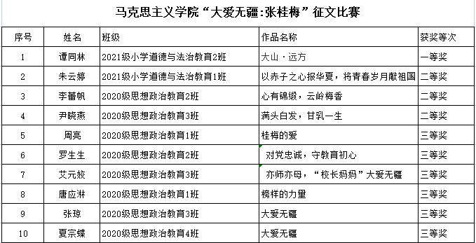 马克思主义学院“大爱无疆:张桂梅”主题征文比赛获奖名单: