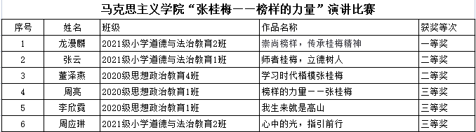 马克思主义学院“张桂梅——榜样的力量”演讲比赛获奖名单: