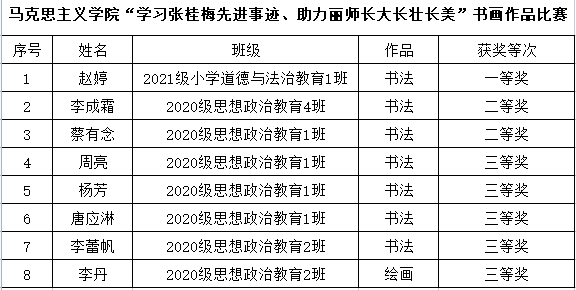 马克思主义学院“学习张桂梅先进事迹、助力丽师长大长壮长美”主题书画比赛获奖名单: