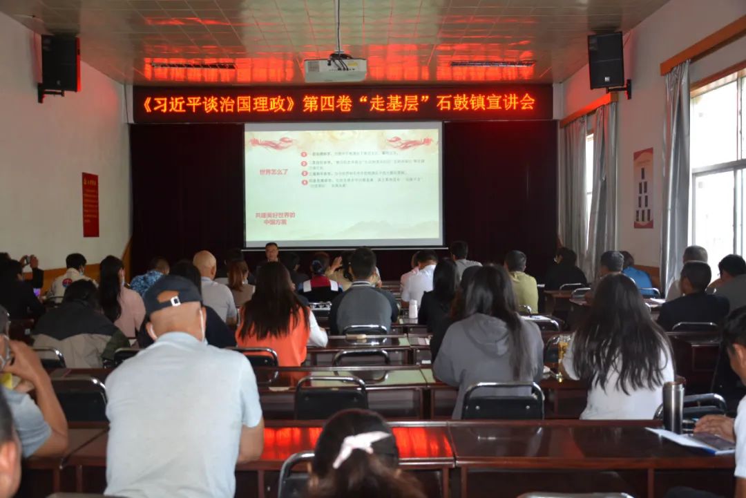 2022年9月2日,《习近平谈治国理政》第四卷“走基层”宣讲团走进石鼓镇宣讲。全镇各村“三委”成员、各站所负责人及镇机关干部职工聆听了宣讲报告。