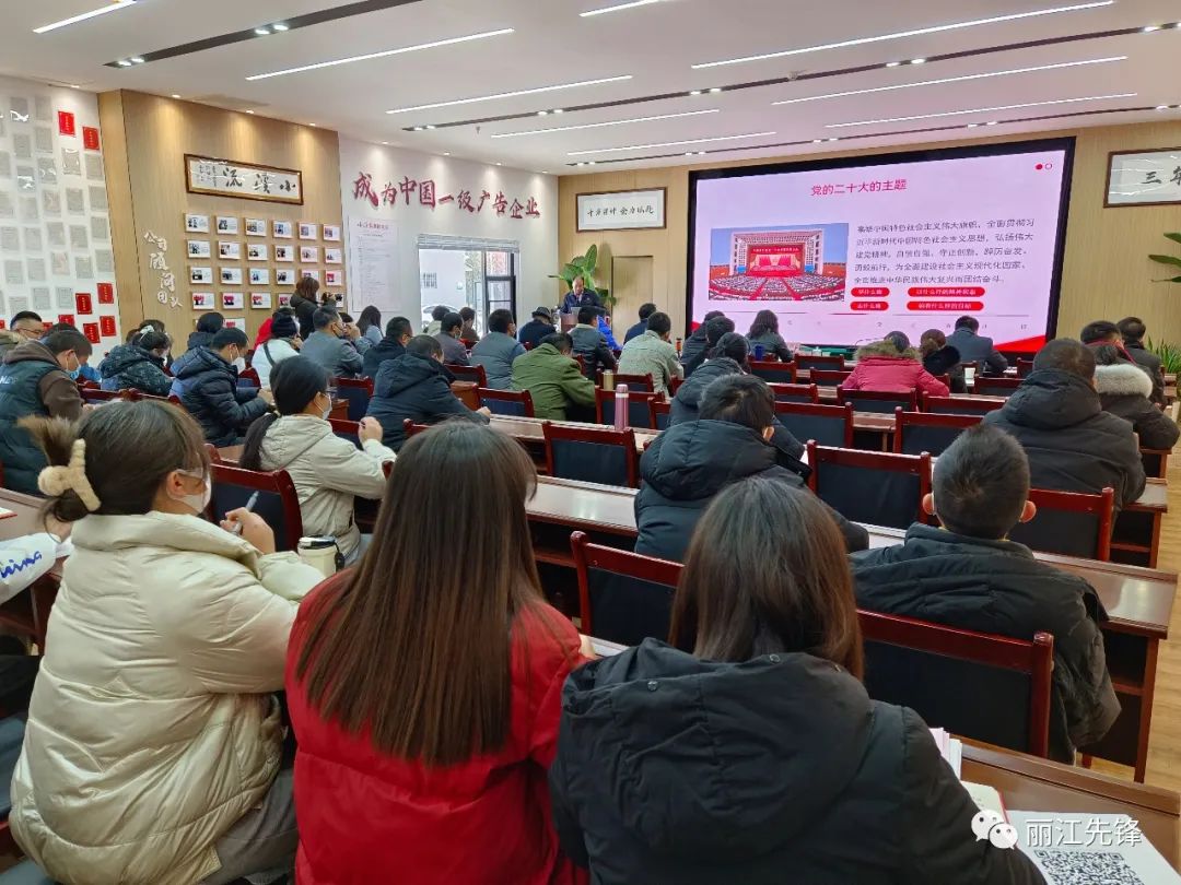 为深入学习贯彻党的二十大精神,进一步推动党的创新理论进两新组织,12月15日上午,丽江市两新组织党的二十大精神主题宣讲会在丽江小溪流传媒集团有限公司举行。市委宣讲团成员、丽江师范高等专科学校马克思主义学院党总支书记沈欢副教授以“深入学习贯彻党的二十大精神”为主题进行宣讲。