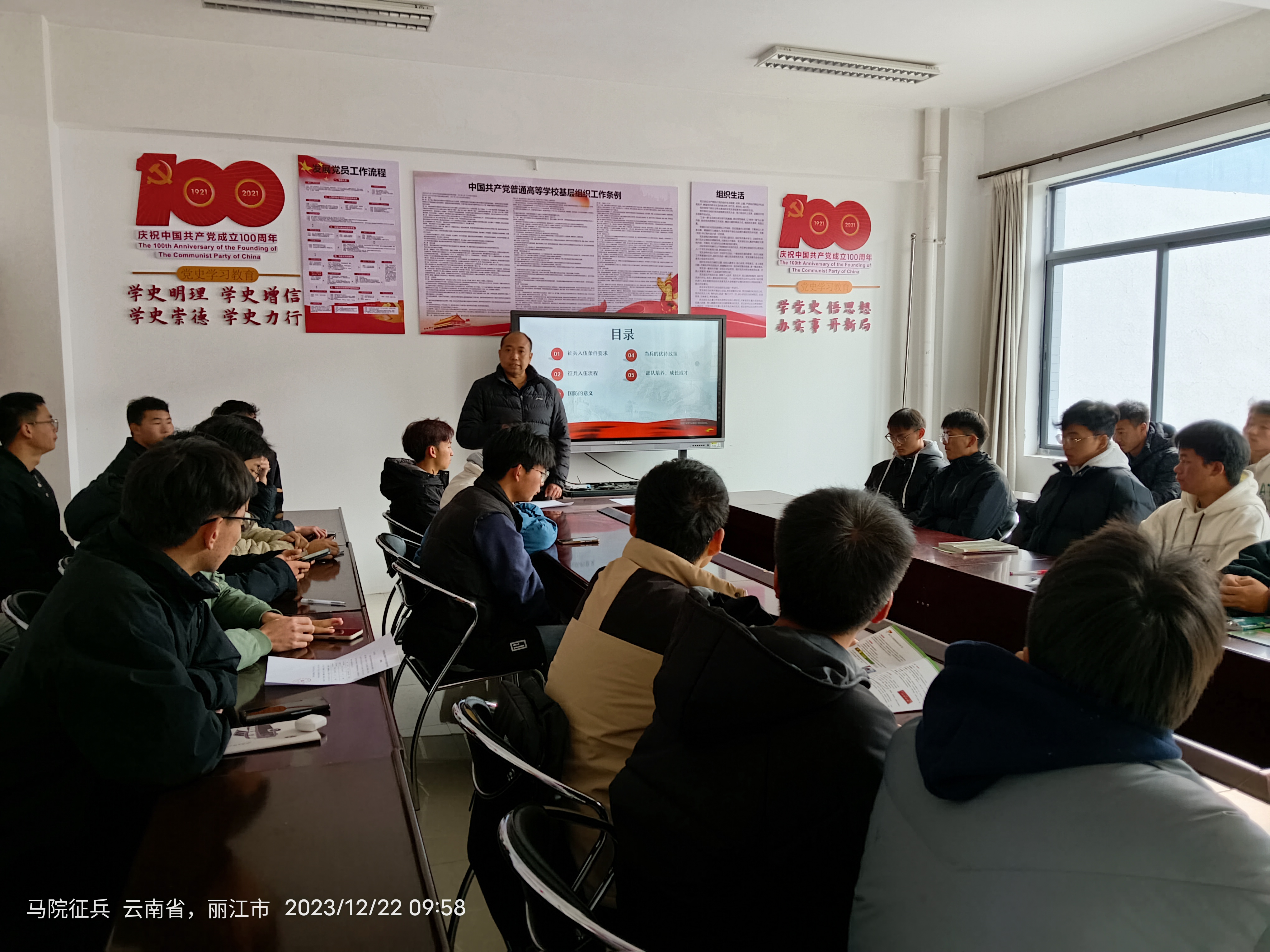 根据校党委的安排部署和学校2024年征兵工作方案的相关要求,为圆满完成2024年度征兵工作任务,我院党总支于2023年12月22日在校务管理中心210会议室召开了2024年征兵宣传动员会议,马院全体男生参加了会议,党总支书记沈欢主持会议。