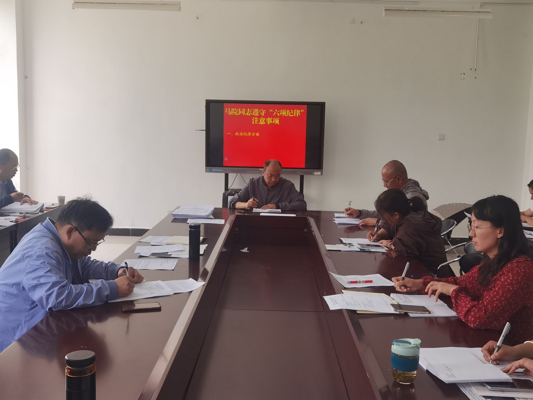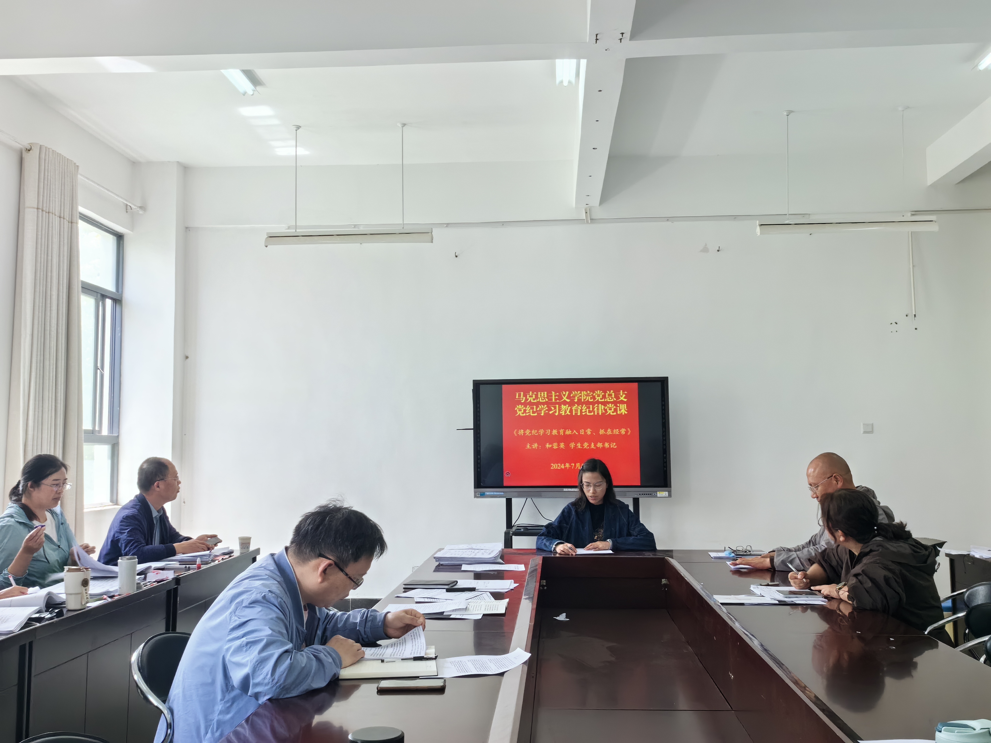 党总支书记沈欢围绕“认真学习处分条例 保驾护航马院发展”主题,重点讲授了马院同志遵守“六项纪律”的注意事项。