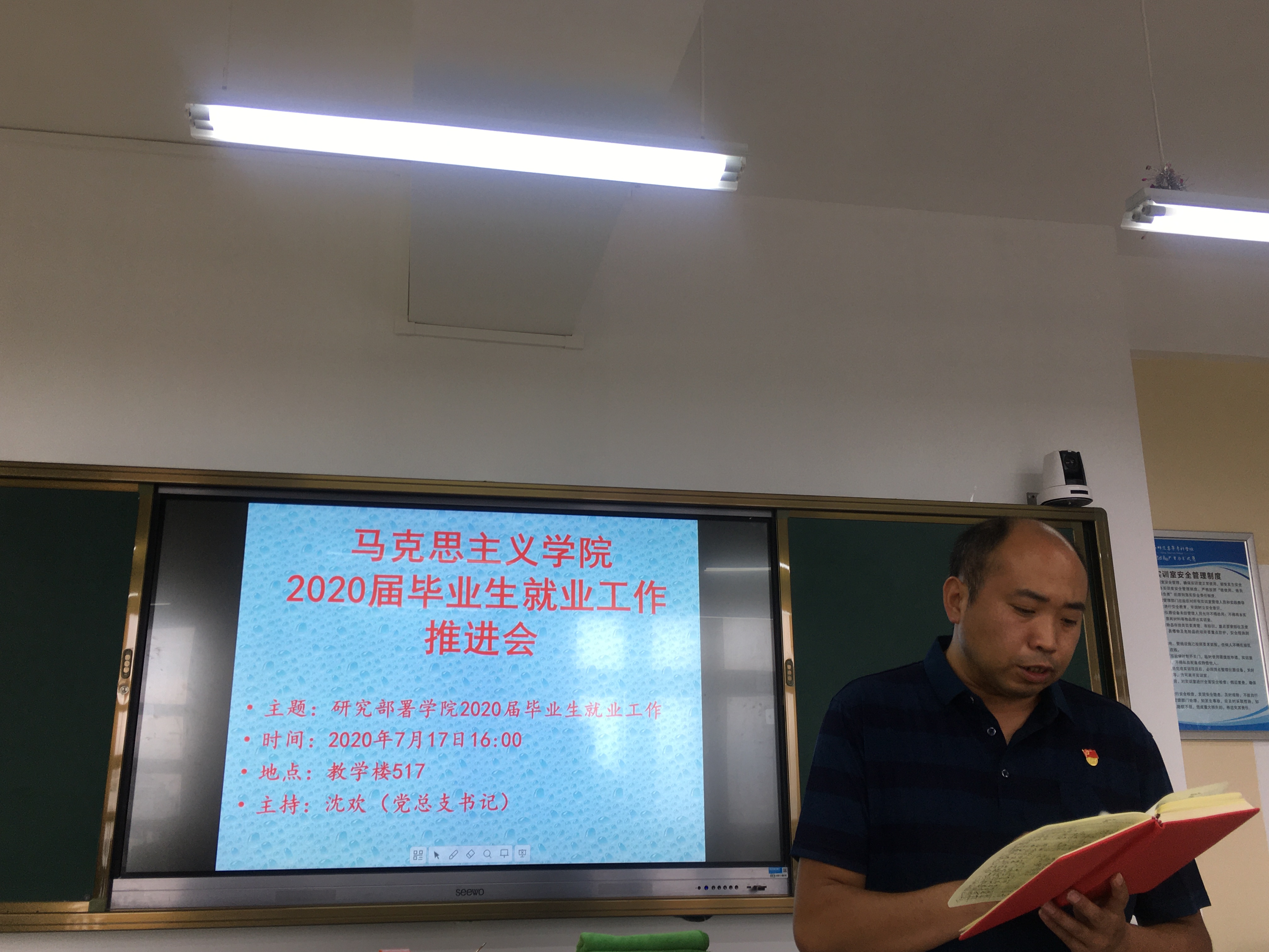 为了切实有效推进我院2020届毕业生的就业工作,根据云南省高校2020届毕业生就业工作第五次视频调度会议和7月17日上午校党委会议的安排部署,我院于2020年7月17日16:00分在教学楼517室召开了就业工作推进会议。党总支书记沈欢主持会议,学院专职教师参加了会议。