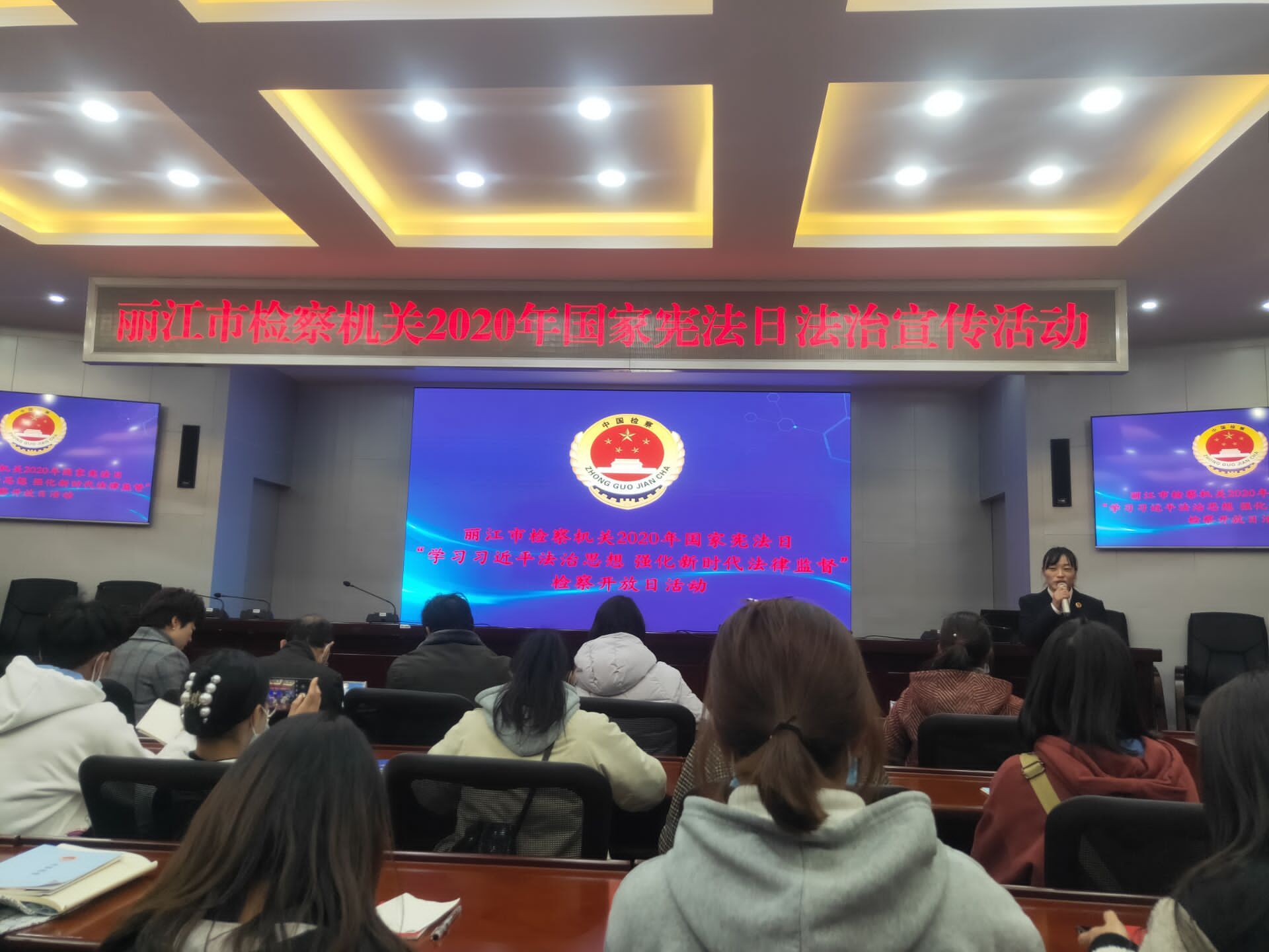 2020年12月4日是我国的第七个国家宪法日,马克思主义学院学生代表受丽江市人民检察院邀请,参加了以“学习习近平法治思想,强化新时代法律监督”为主题的检察开放日活动,实地参观12309检察服务大厅,检察文化走廊和党建建设情况。