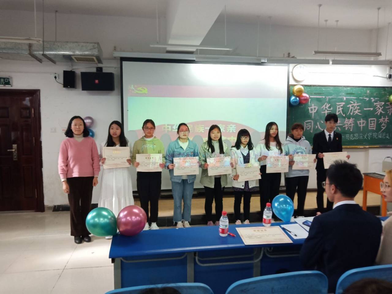 在演讲比赛中,十三位参赛选手演讲主题明确,演讲内容积极向上,各个参赛者从不同的角度,通过自己的所见所闻,所思所想,抒发爱国之心、民族之情、团结之志,观众台座无虚席,观众们热情洋溢,放下手机认真听参赛者的演讲,比赛现场气氛活跃。骆书衡带来了《铸中国魂•现中国梦》、兰金红带来了《我的民族之乡》、康正萍带来了《铸牢中华民族共同体意识,促进民族团结进步》、赵升云带来了《民族团结展新颜,国家富强奏华章》……其中赵升云的演讲主题突出、声音洪亮、精神饱满、极具感染力,现场掌声此起彼伏,把演讲比赛推向高潮,经过激烈角逐,最终赵升云同学以优异的成绩摘得桂冠,骆书衡和康正萍获得二等奖,兰金红、谭万静、李素素获得三等奖。