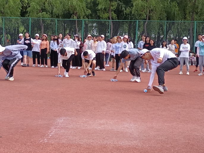 活动中途,活动组织者组织在场同学进行“击鼓传花”游戏,同学们有的同学唱歌,有的同学比手语,活动现场也十分精彩。最后一个竞赛游戏是“滚水瓶”,即参赛选手依次进行滚水瓶,滚到指定的位置在滚回来,有下一个人依次进行,时间少者则获胜。