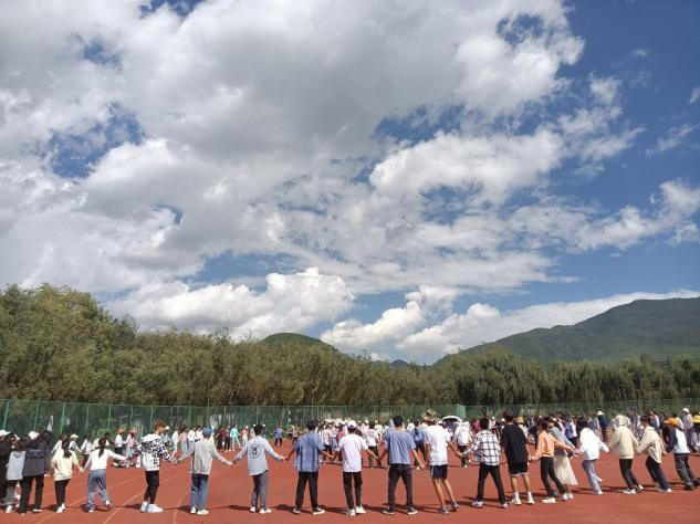 本次三走活动共有九组参赛选手,参赛选手们都洋溢着灿烂的笑容,充满激情。开场活动是丽师的一大特色——民族打跳。同学们手牵着手一起雀跃,田径场上顿时一片欢声笑语。虽然天气炎热,但是大家手拉着手,跟着音乐一起跳动起来,让人感到无比激动。