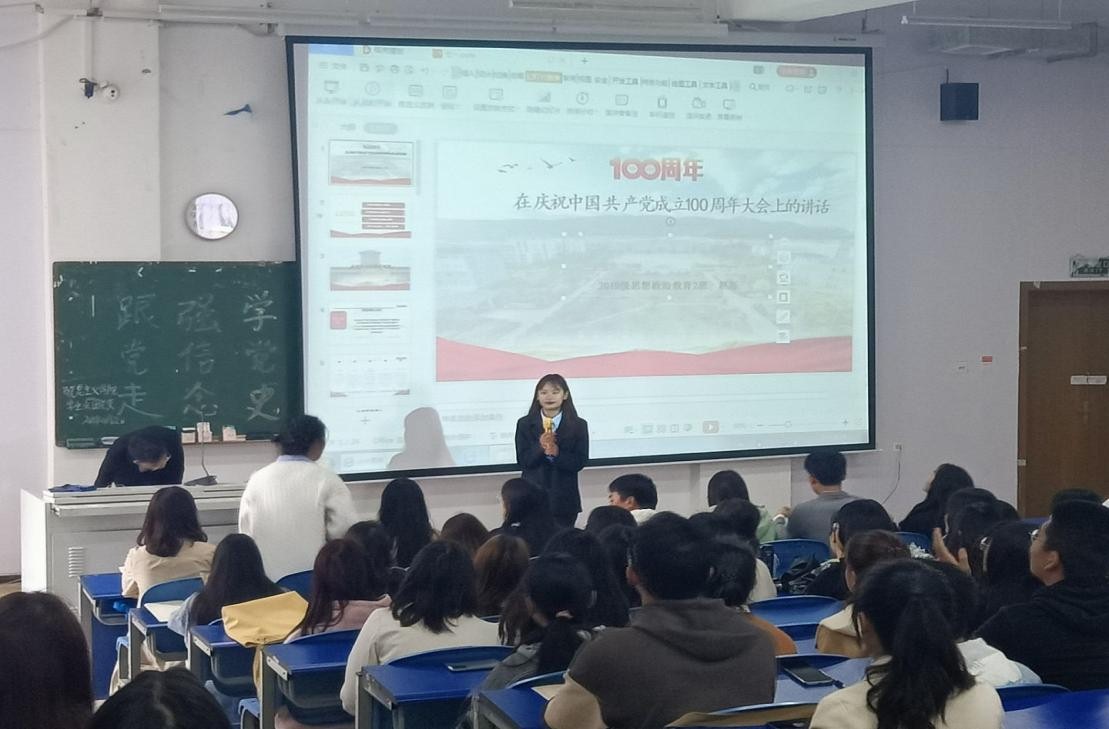 中国共产党建立和发展的历史,就是为中华民族的独立、解放繁荣,为中国人民的自由、民主、幸福而不懈奋斗的历史。让我们满怀庄严与崇敬,向全心全意为人民服务的中国共产党表达一份敬仰,增强我们的理想信念,勉励自己跟党走,向前走!作为新时代青年,我们大学生应了解党史,深入党史,学习党史。为此,马克思主义学院团总支于2021年10月22日举行了“学党史,强信念,跟党走”党史学习主题活动。