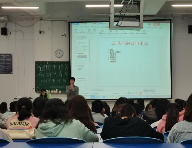 中国共产主义青年团是中国共产党的先进青年的群众组织,是广大青年在实践中学习共产主义的学校,是中国共产党的助手和后备军。为使每位团员干部树立正确的社会价值观和找准自己的定位,明确自己的职责,为祖国培育更多担当民族复兴大任的中国优质青年,马克思主义学院团总支于2021年10月23日下午在教学楼331教室举行了“增强团干修养,培育优质青年”团校团干培训。