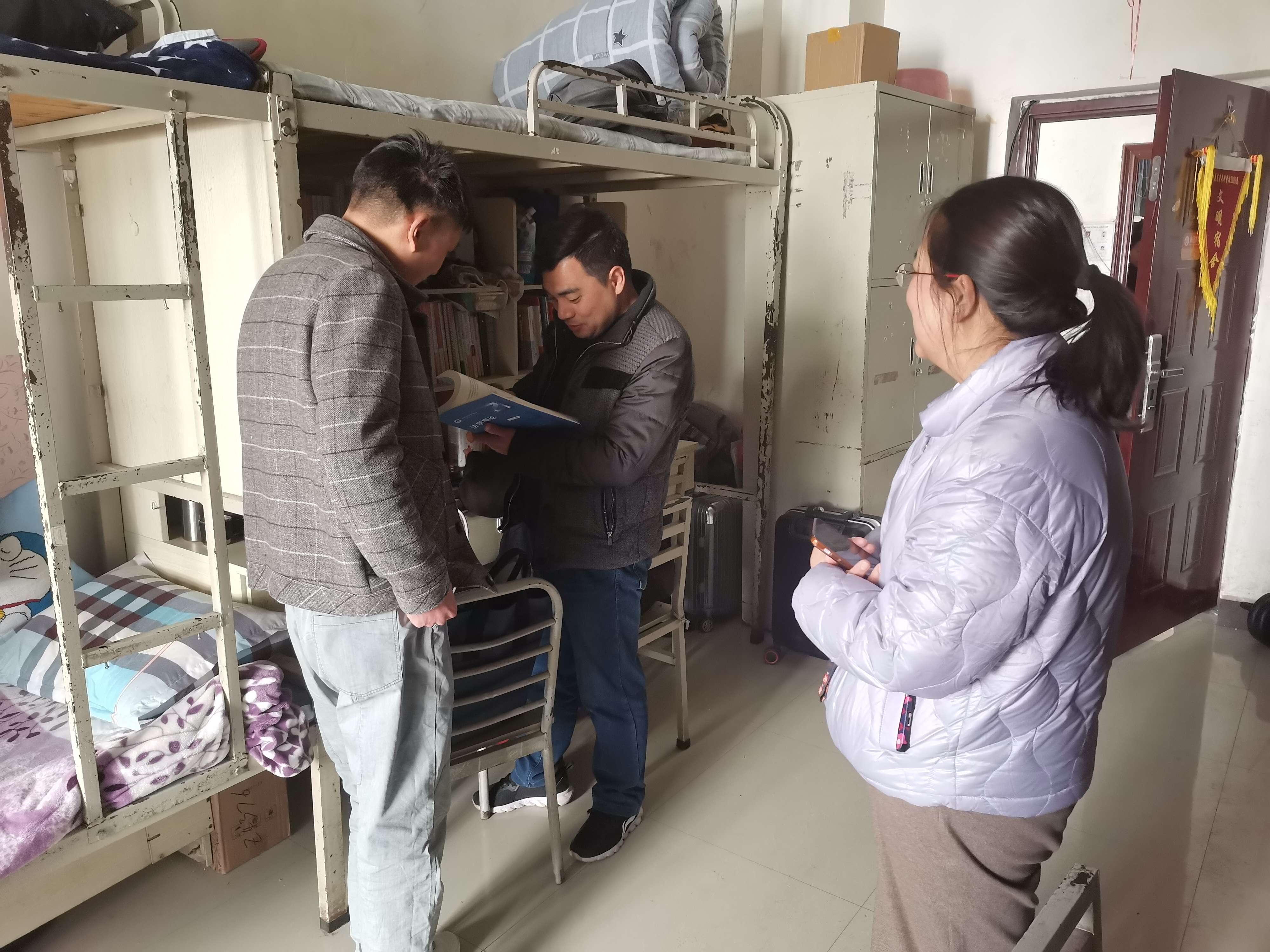 在学生返校开学之际,为进一步了解同学们的宿舍生活情况,开展宿舍安全隐患排查,提高同学们的安全意识,2022年2月28日下午,我院党政领导和教师代表走访了学生宿舍。