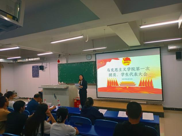 2022年6月23日晚上19点整,马克思主义学院在教学楼222教室举办了第一次团员、学生代表大会。出席本次代表大会的嘉宾有:我院党总支书记沈欢老师、党总支副书记木金瑛老师、团总支书记赵冬娇老师以及校团委组织部郑冬萍,张琳佳,共有95名学生代表参加了大会。
