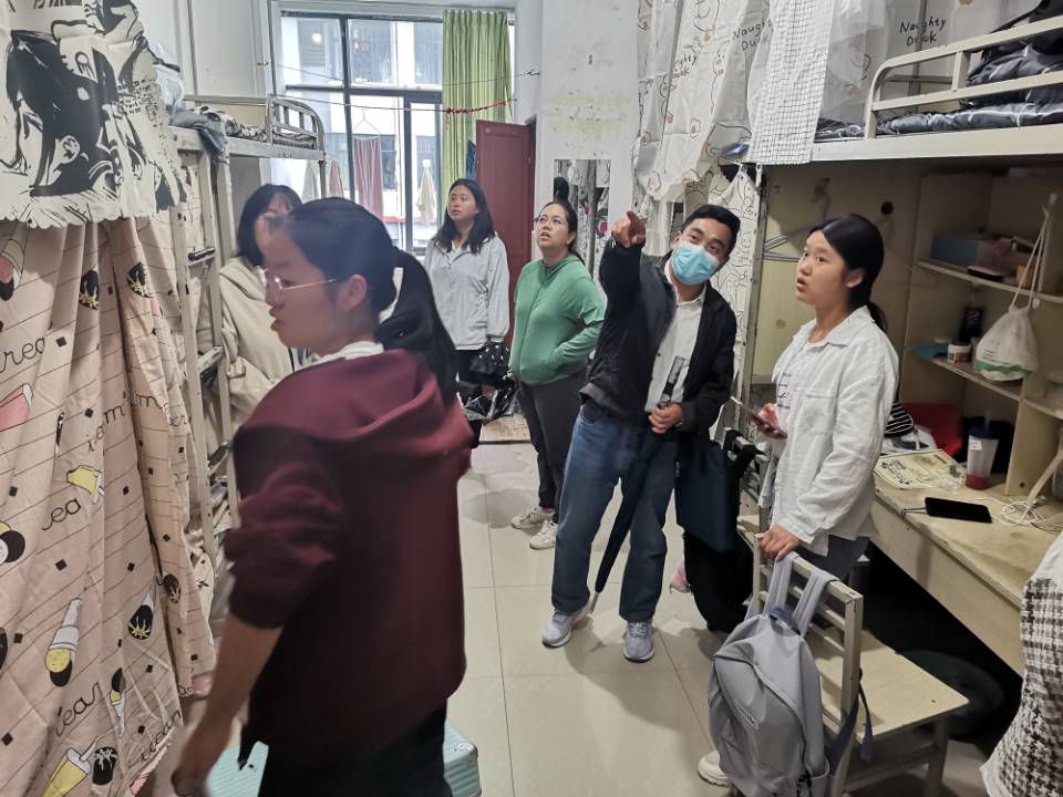 下午六点,我院领导和新生班主任一同前往宿舍看望新生,在走访宿舍过程中,学院领导和新生亲切交流,仔细询问同学们的家庭情况、入学报到情况和对校园适应情况,鼓励新生互相学习、互相照顾、互相包容,营造良好的宿舍氛围,在新的大学生活中共同进步。