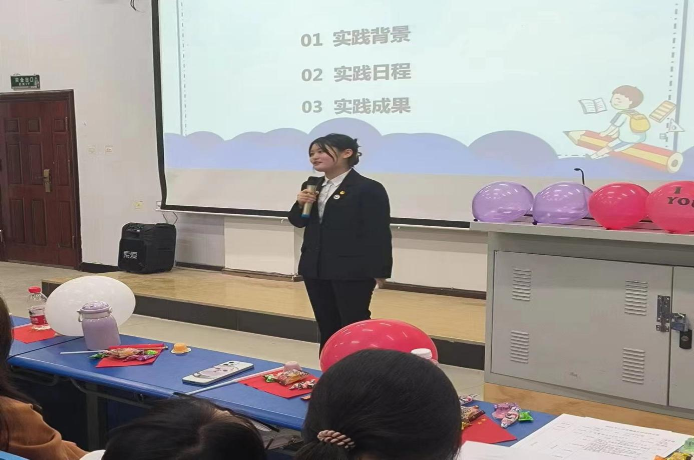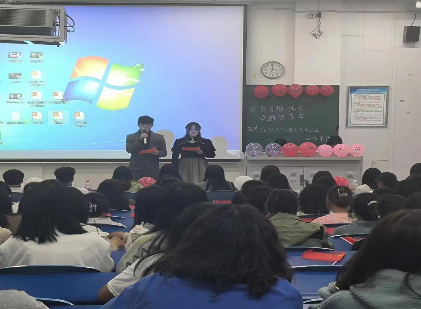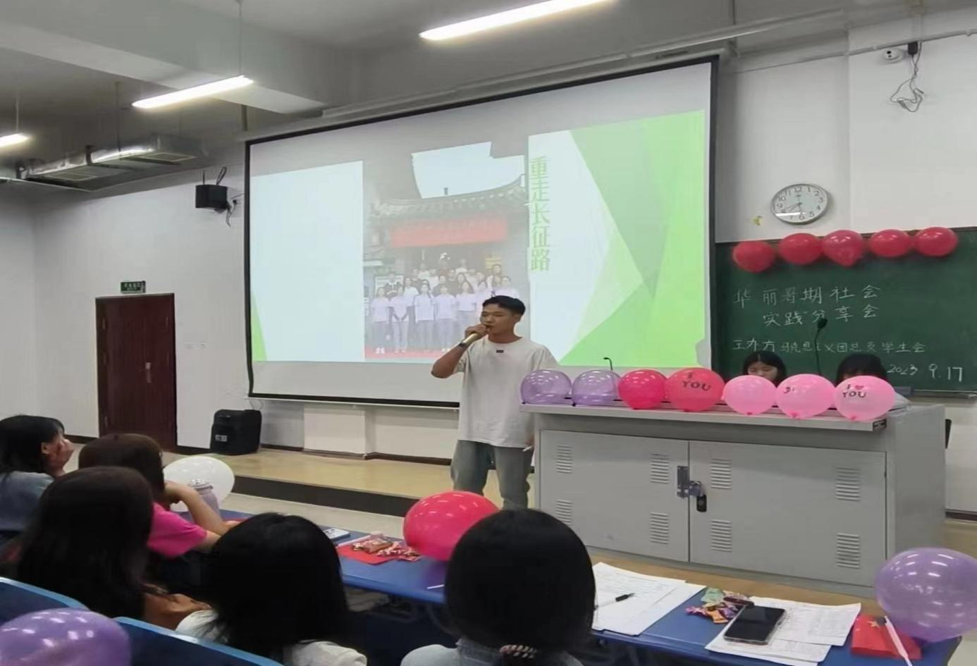 实践胸中所学,方能在一次次摸爬滚打中褪去稚气,在一次次迎难而上中增添勇气,在一次次爬坡过坎中沉淀底气。实践队成员陈铮同学为我们分享了他参加此次社会实践的付出与收获,他收获了感恩,感恩身边的每一位同学;李思雨同学向同学们展示了在此次社会实践中华•丽团队创造的成果,李建华同学分享了重走长征路的意义,让同学们近距离的感受红色文化……通过各位同学的分享,让同学们感受到了“华•丽”团队的团队精神、拼搏精神,体会到了实践育人的重大意义。