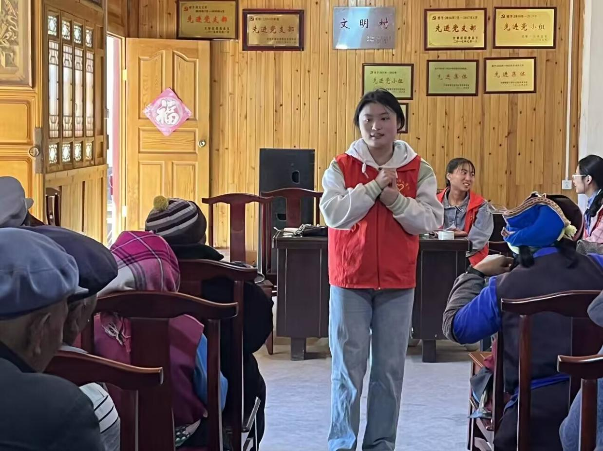 活动进行时,首先由丽师青年讲师团成员李思雨为村民们进行普法宣讲,她结合自身专业优势,联系发生在身边的实际案例,为村民们讲解关于防诈骗和帮信罪的知识,她也教给村民们很多防诈骗小技巧,希望村民们能够学以致用。其次由丽师青年讲师团成员保庆为大家讲解关于法律援助和社区监督的知识,他给村民们细致地讲了法律援助包括哪些,以及该怎么用,让村民们受益匪浅。最后由丽师青年讲师团成员杨思琪为村民们讲解关于家庭赡养与扶养的知识,强调赡养和扶养是两种不同的法律概念,赡养是指子女对父母进行物质和生活上的照顾,而扶养是指特定亲属间一方须对他方承担生活供养责任的法律关系,是夫妻间最为基础和最重要的义务之一,让村民们收获颇多。