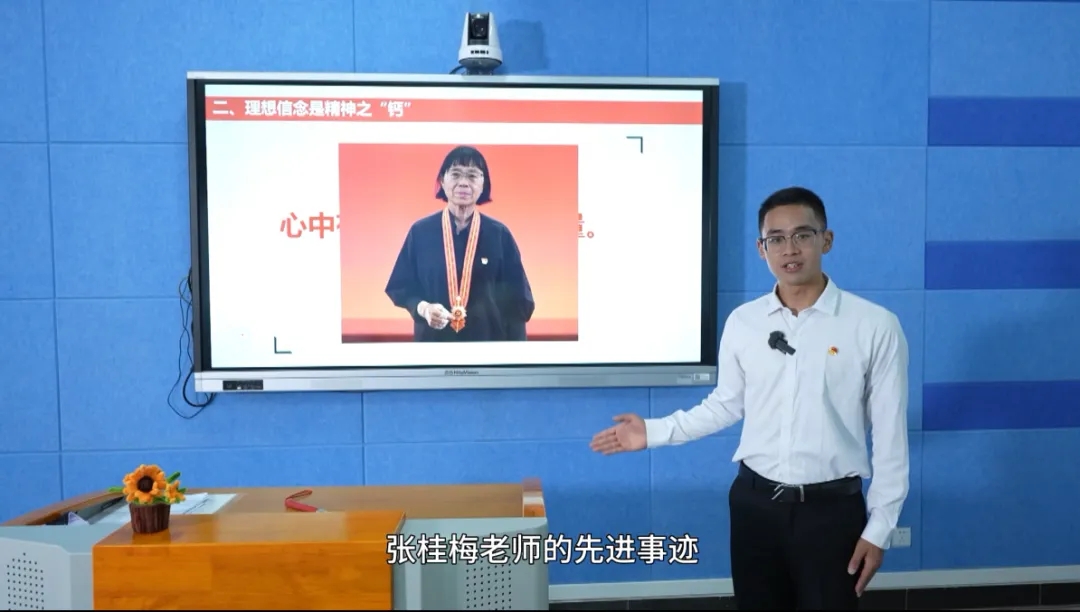 该作品由马克思主义学院赵冬娇、寸玉海两位老师指导,小学道德与法治教育专业蒋正耀、李思雨两位同学主讲,以《思想道德与法治》课程“理想信念是精神之‘钙’”为讲授内容,让学生通过学习张桂梅老师先进事迹,深刻领悟理想信念的重要作用,从而树立远大理想,坚定崇高信念。课堂采用“传统讲授+场馆讲解”的双人主讲形式,以学生视角为出发点,用艺术手法展现大学生心中的思政课,形成情景融合的沉浸式创新教学模式。