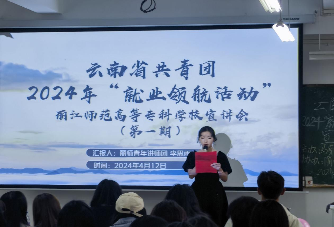 本次宣讲活动由丽江师范高等专科学校青年讲师团成员李思雨主讲,围绕就业难的原因、近年大学生就业数据分析、2024年全国两会中的就业政策以及如何做好就业规划四个方面展开。在宣讲中,李思雨同学紧紧围绕主题,进行了全面深刻的讲解,同学们都听得津津有味。随后,观看了两个大学生就业宣传视频,加深了同学们对就业的更深入了解。最后,进行了创新创业知识问答互动环节,同学们都积极参与答题,通过本次答题拓宽了学生对创新创业方面知识的了解。