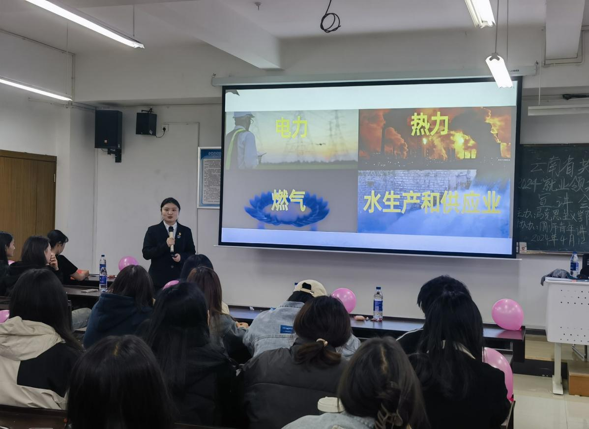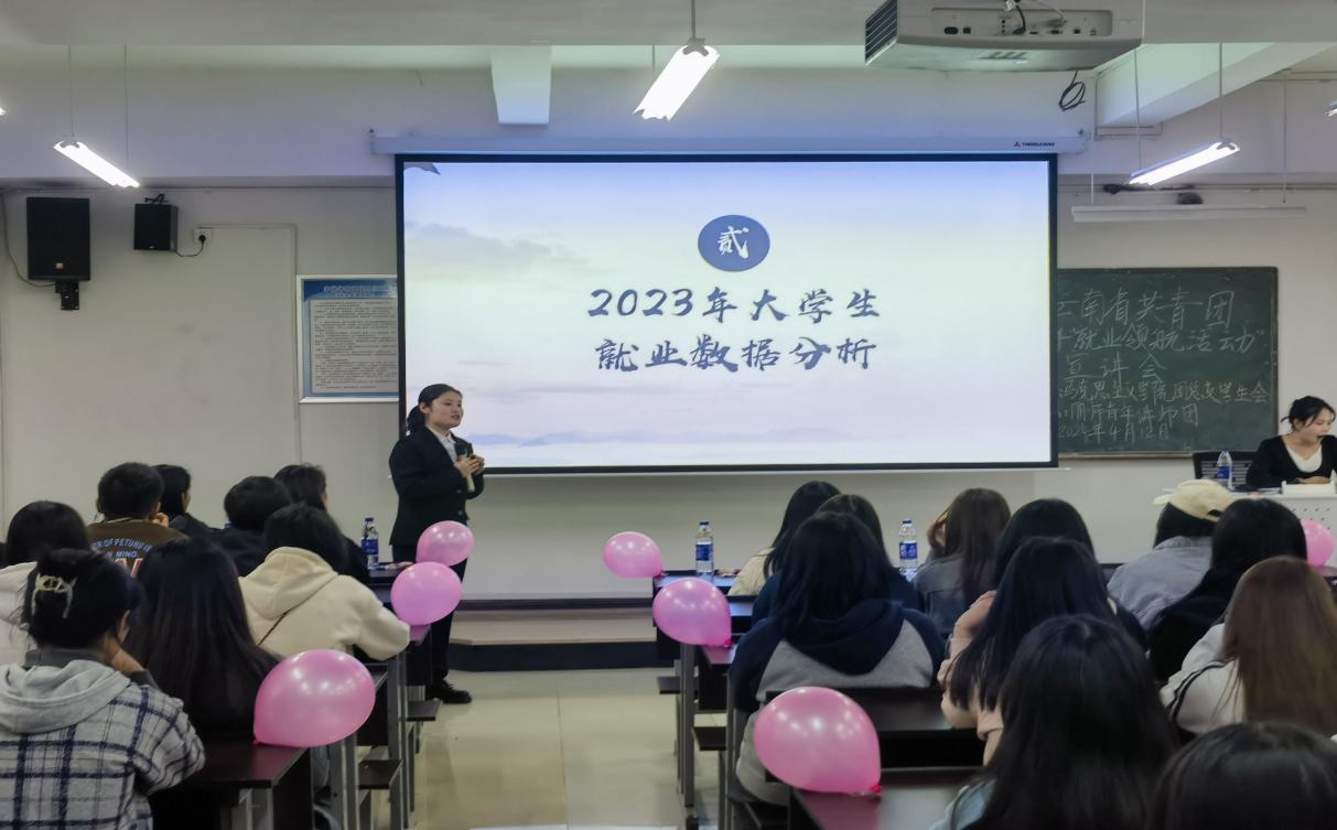 为深入贯彻党的二十大精神,坚决落实党中央、国务院决策部署和市委、市政府工作要求,积极促进高校毕业生等青年群体高质量充分就业,着重围绕《高校毕业生就业创业政策一百问》《云南省支持青年创业兴乡三年行动(2024-2026年)》等就业创业政策措施,马克思主义学院团总支学生会于2024年4月12日在博学楼举办了“就业领航活动”宣讲会。