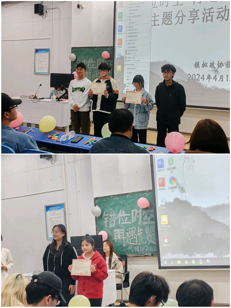 为增强当代大学生的文化自信,了解人类文明,提高文化素养,马克思主义学院模拟政协社团于2024年4月12日在博学楼331教室举办了“错位时空,再遇先贤”分享活动。