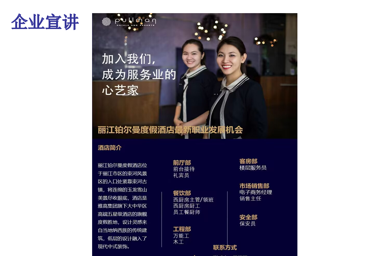 民生福祉,就业为本,就业是最基本的民生。为开拓就业岗位,拓宽就业渠道,加大对未就业毕业生兜底帮扶,我院在2024年6月21日晚上开展了“职等你来”小型线上招聘会,我院2021级毕业生和2022级部分在校生参加了招聘会。本次招聘会邀请到了五家在丽企业开展招聘宣讲,五家企业分别从公司简介、招聘岗位、福利待遇等方面进行了详细介绍,招聘会最后进行了互动答疑。