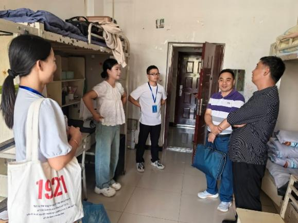 下午17:00,我院领导班子、新生班辅导员、新生班班主任前往寝室看望新同学,传递着学院对新生的深切关怀与殷切希望。在看望过程中,老师们与新同学进行亲切交谈,尽力的帮助同学们解决困难,解疑答惑,缓解新同学初来乍到的紧张与不安,也减少她们对于新学校的陌生感,帮助新生尽快适应大学生活。